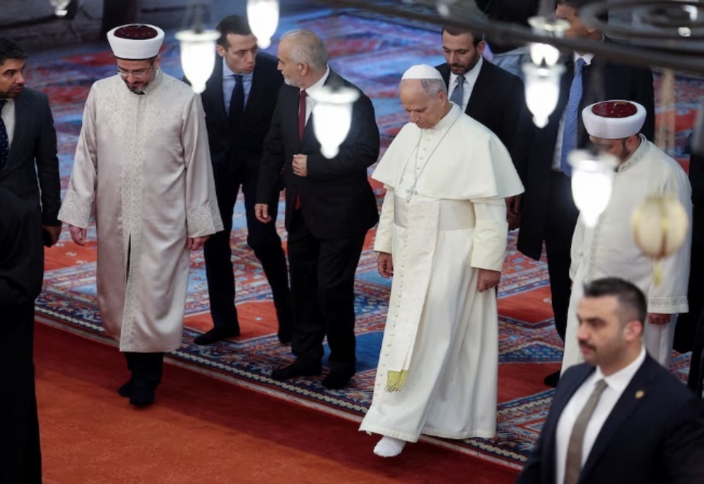 Papa Leon a vizitat sâmbătă Moscheea Albastră din Istanbul, scoțându-și pantofii în semn de respect, dar fără a se ruga, în prima sa vizită ca lider al Bisericii Catolice într-un lăcaș de cult musulman, în cadrul vizitei sale de patru zile în Turcia, informează Reuters.